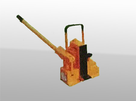 液壓起拔道器由油缸,油缸座,油箱,柱塞泵,支架,底座及搬把等組成。底座,支架及油缸座有銷軸鉸接而成平面四連桿機(jī)構(gòu)。油缸座上設(shè)有安全閥和回油閥等機(jī)構(gòu)。搬動(dòng)操縱桿使柱塞泵里產(chǎn)生的高壓油進(jìn)入油缸,推動(dòng)活塞伸出,在活塞推力的作用下,油缸及支架繞底座上的銷軸同時(shí)向上旋轉(zhuǎn),在養(yǎng)路機(jī)具起道輪的鉸接處產(chǎn)生垂直向上的推力,同時(shí)在支架的頂塊上產(chǎn)生水平方向的推力,從而達(dá)到起道和拔道的目的。